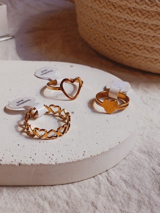 Anillos corazones - Acero dorado