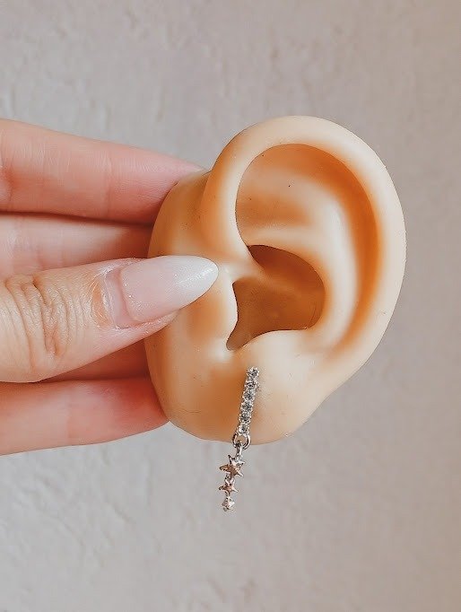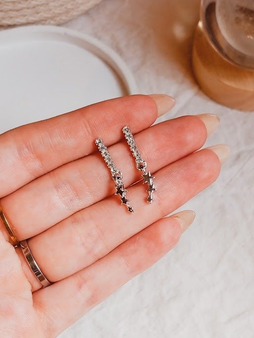 Par de aros con strass de acero blanco. 2 cm