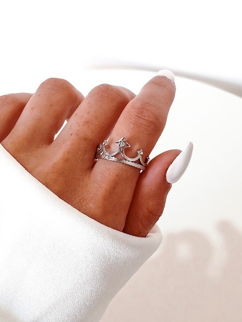 Anillo strass CORONA - Acero quirúrgico talle 19
