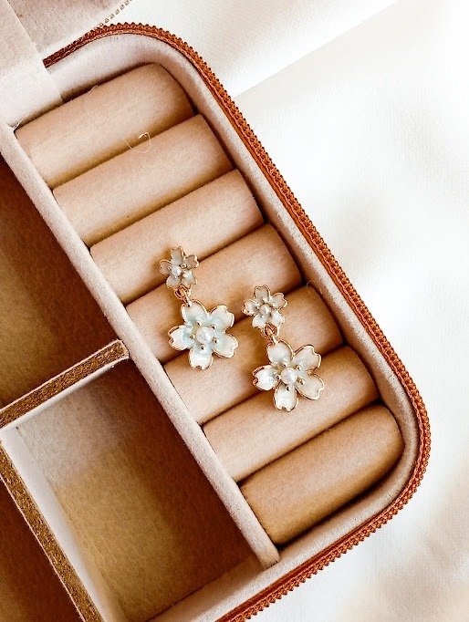 Aros florcitas celestes - Acero dorado