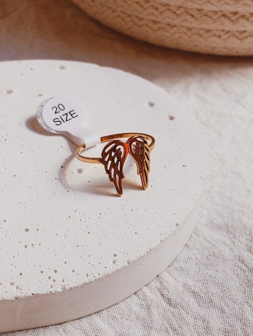 Anillo alas - talle 20 - Acero dorado