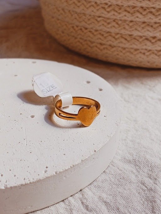 Anillo corazón - talle 16 - Acero dorado