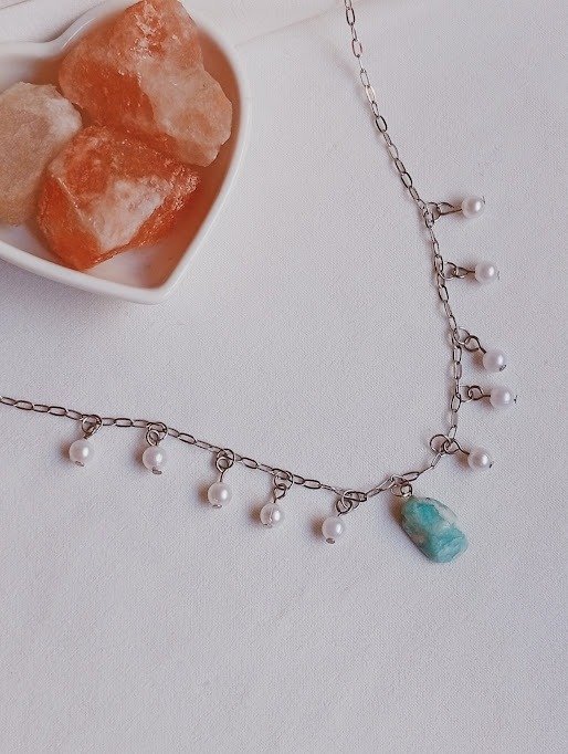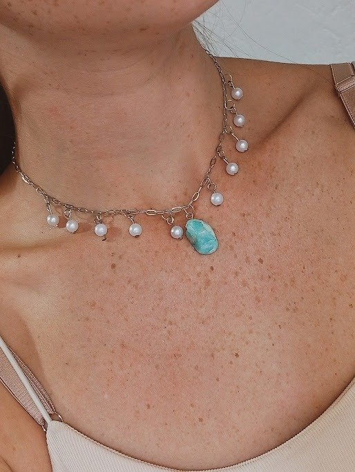 Collar gargantilla piedra aguamarina - Acero quirúrgico